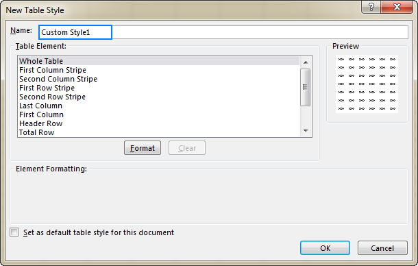 To use the newly created table style as the default style in the current workbook, select the Set as default table quick style for this document box.